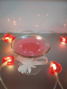 Свеча гелевая розовая в бокале сердце с бусинками