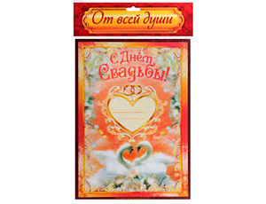 Диплом пластик 3D на плакетке С Днем свадьбы 16,4*22,5 см