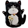 К ФИГУРА Кот черный с букетом ромашек