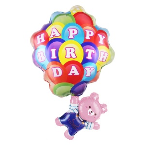 Шар (32''/81 см) Фигура, Медвежонок с шариками, Розовый, 1 шт.