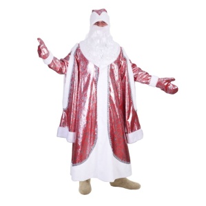 Карнавальный костюм "Дед Мороз", парча, серебро на красном, шуба, шапка, варежки, борода, р-р 48-50,