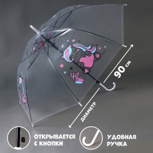 Зонт детский «Единорожка» полуавтомат прозрачный, d=90см
