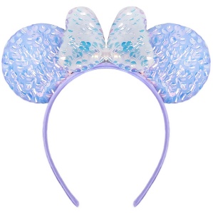 Ободок, Мышка с бантиком, Сиреневый/Белый, 1 шт.