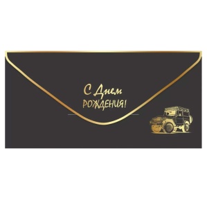 Конверт для денег "С днем рождения", Черный, soft-touch / 1 шт /
