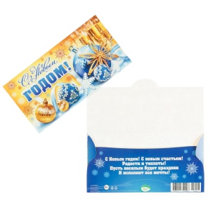 Конверт для денег "С Новым Годом!" новогодние игрушки, бокалы