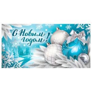 Конверт для денег "С Новым годом!", Серебрянные и голубой шары