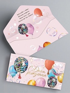 Конверты для денег, С Днем Рождения! (яркие шарики), Розовый, Металлик, 10 шт.