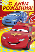 Открытка "С днем рождения!"Тачки на красном