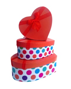 Коробки набор 3 в1 сердце "Разноцветный горох" Оранжевый с бантом (18*16,5*6 / 22,5*20,5*8 / 27*25)