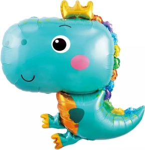 Шар с клапаном (17''/43 см) Мини-фигура, Динозаврик в короне, Бирюзовый
