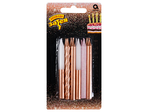 Свечи д/торта роз зол/бел блеск 8см12штA
