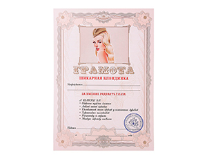 Грамота "Шикарная блондинка"