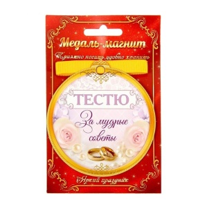 Медаль на магните "Тестю за мудрые советы" 8,5 х 9,2 см