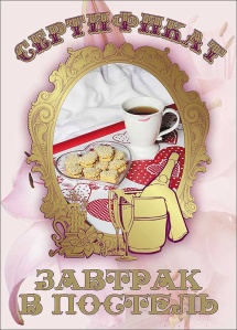 Свадебный диплом, Сертификат на завтрак в постель