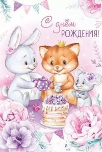 Открытка-поздравление "С Днем рождения!" чаепитие