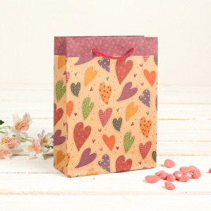 Пакет крафт XL "Разноцветные сердца" 31 х42 см