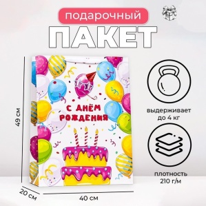 Пакет ламинированный вертикальный "С Днем рождения", XXL 46 х 61 х 20 см 10114268
