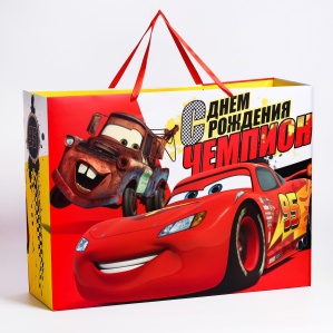 Пакет подарочный «Чемпиону»,61х46х20 см, упаковка, Тачки