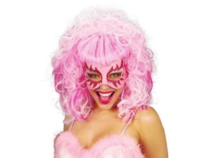 ПМ3321 Маска Блестящая с париком розовая 1001E