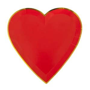 Тарелки (9''/23 см) Сердце, Красный, Металлик, 6 шт.