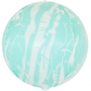 Шар (24''/61 см) Сфера 3D, Мрамор, Бирюзовый, 1 шт.