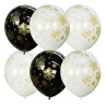 M 12"/30см BLACK&WHITE&TRANSPARENT (шелк) 5 ст. рис Снежинки золотые 25шт