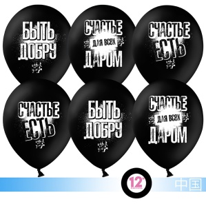 Шар (12''/30 см) Быть добру!, Черный, пастель, 2 ст, 50 шт.