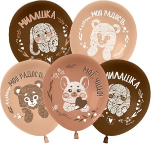 Шар (12''/30 см) Нежные зверята, Ассорти, пастель, 2 ст, 25 шт.