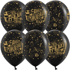 Шар (12''/30 см) С Днем Рождения, Это Лучший День!, Черный, пастель, 5 ст, 25 шт.