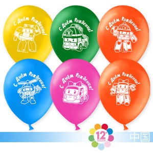 Шар (12''/30 см) С Днем Рождения (Робокар Поли), Ассорти, пастель, 2 ст, 50 шт.