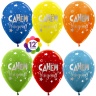 Шар (12''/30 см) С Днем Рождения! (серебряные звезды), Ассорти, пастель, 5 ст, 25 шт.