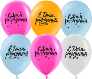 Шар (12''/30 см) С Днем Рождения! (шрифты), Ассорти, пастель, 2 ст, 25 шт.