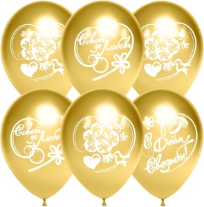 Шар (12''/30 см) С Днем Свадьбы, Совет да Любовь!, Золото, хром, 2 ст, 25 шт.