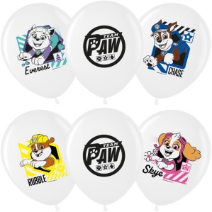 Шар (12''/30 см) Щенячий Патруль, Белый (200), пастель, 2 ст, 25 шт.