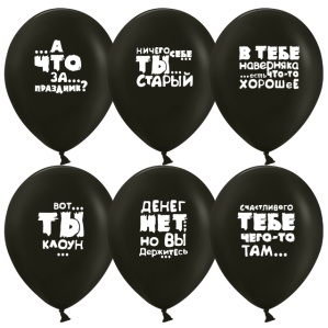 Шар (12''/30 см) Юмористические шары, Черный, пастель, 2 ст, 25 шт.