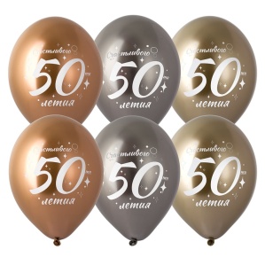 Шар с рисунком 14" Хром Юбилей - 50. 6шт