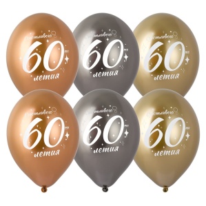 Шар с рисунком 14" Хром Юбилей - 60. 6шт