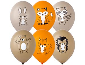 Шар с рисунком 14" Лесные зверюшки 2цв