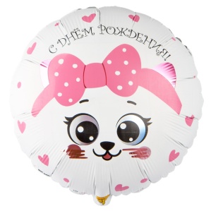 К 18" РУС ДР Кошка с розовым бантиком