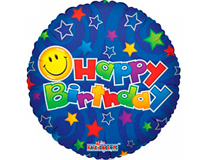 K Круг 642 С Днем Рождения Смайл на синем фоне 18"/45см
