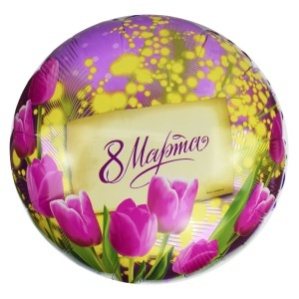 Круг 8 Марта Тюльпаны и Мимозы 18"/45см шар фольга