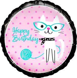 Шар (18''/46 см) Круг, С Днем рождения! (кошка)
