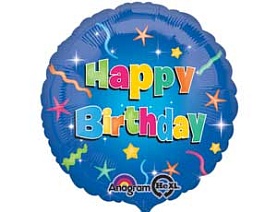 Шар (18''/46 см) Круг, С Днем рождения (космос), Синий