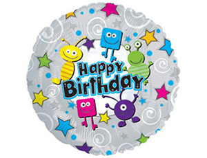 Шар (18''/46 см) Круг, С Днем рождения (монстрики), Серебро
