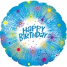 Шар (18''/46 см) Круг, С Днем рождения (салют), Голубой
