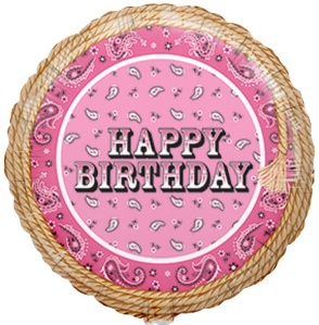 Шар (18''/46 см) Круг, С Днем рождения (веревочка с кисточкой), Розовый