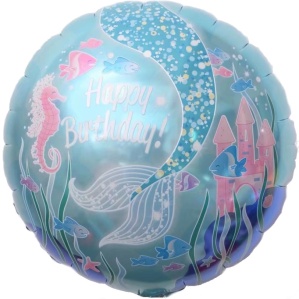 Шар (18''/46 см) Круг, С Днем Рождения! (замок Русалочки)