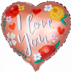 Шар (18''/46 см) Сердце, Я Люблю Тебя (цветы), Розовое Золото, Сатин