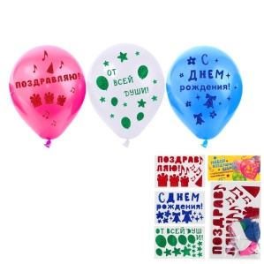 Наклейки голографические для шаров "С Днем Рождения" 3 шт+ 5 шариков