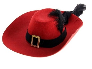Шляпа красная, черная с пером и лента 10*40*35
